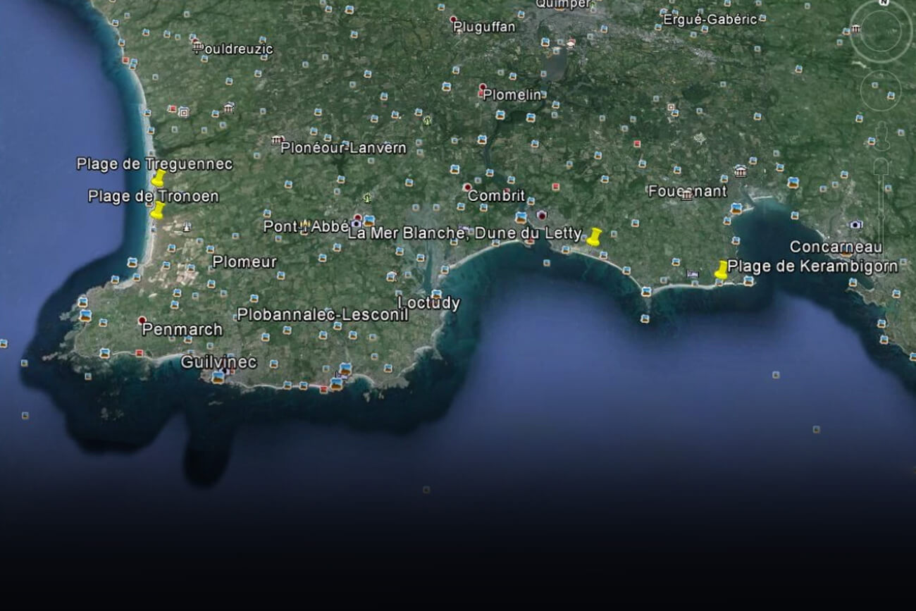 Direction St Jean de Trolimon suivre chapelle de Tronoën puis la plage.
